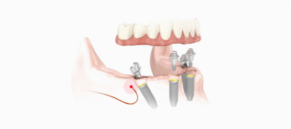 При методе протезирования ALL ON 4, обходят гайморову пазуху или мандибулярный нерв, для того, чтобы удешевить стоимость протезирования и не проводить операцию по наращиванию костной ткани.